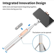 The selfie stick function and tripod bracket are integrated together, combined with high-quality aluminum telescopic pole, the selfie stick is very stable. The material is aluminum alloy with the surface is anodized oxidation process for which it will be durable and has excellent hand feel.
